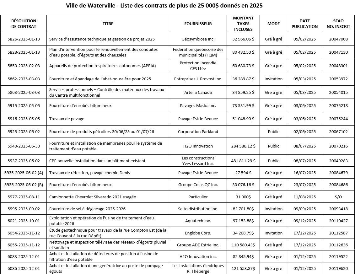 SEAO WATERVILLE - CONTRATS PUBLICS
