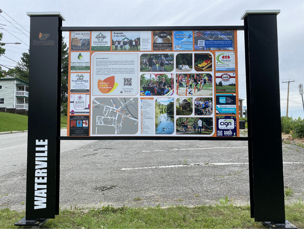 Nous sommes fiers de vous présenter notre nouveau mobilier urbain! Les passants pourront consulter les cartes routières de la municipalité de Waterville, tout en s’informant des entreprises de la région. Venez y jeter un coup d’œil aux abords du stationnement du Parc des Cascades sur la rue Gosselin. Merci à nos partenaires!