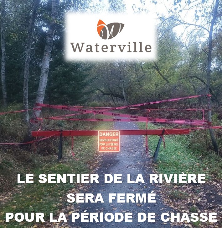 Avis aux usagers du Sentier de la rivière de Waterville, le sentier sera fermé pendant les dates suivantes :